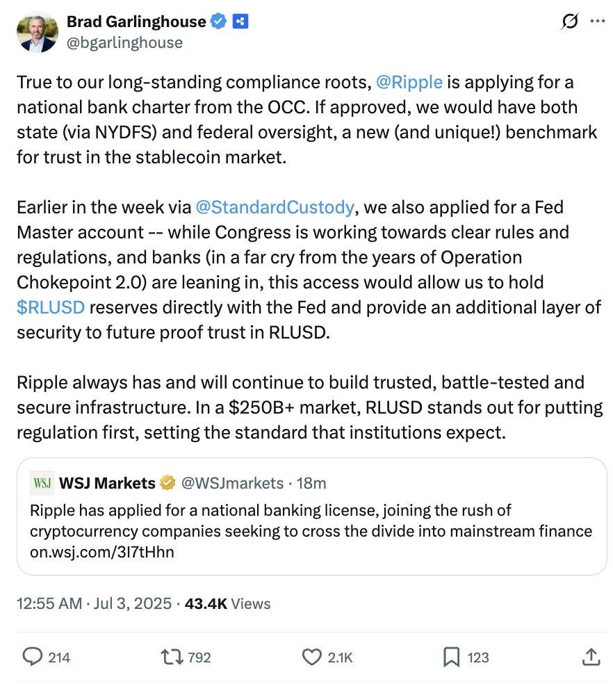 Ripple is about to become a bank, RLUSD is the gateway, and XRP is the key.